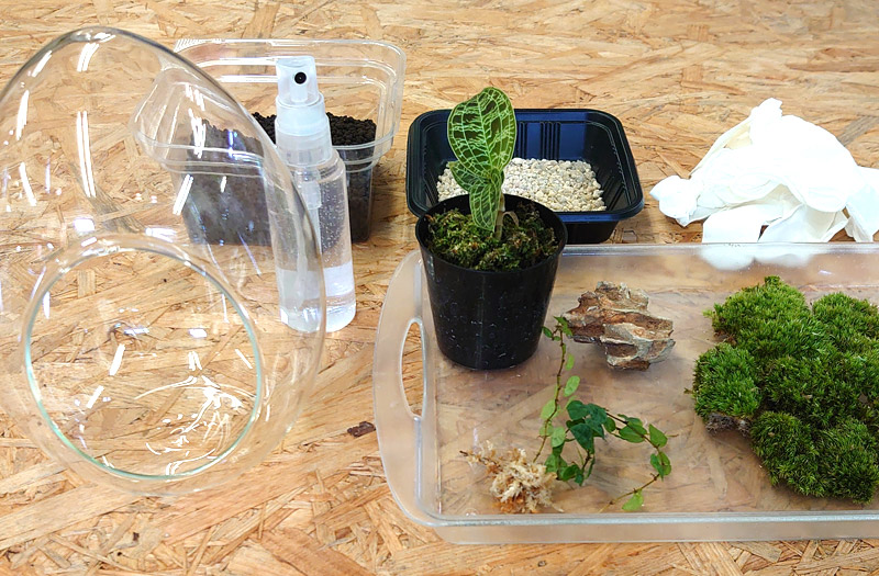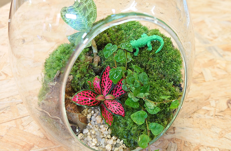 苔リウムという、ガラス容器で苔+植物を育てるものです。