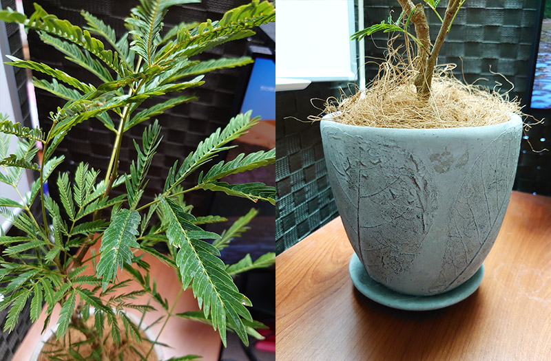 他にもお店で気になった鉢植えを購入。(エバーフレッシュ)