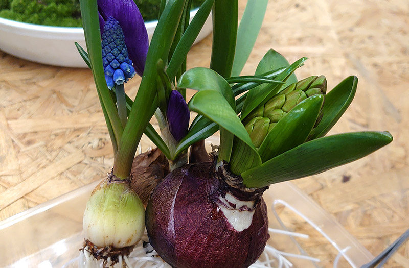 球根は、ムスカリ、クロッカス、チューリップ、ヒヤシンス。