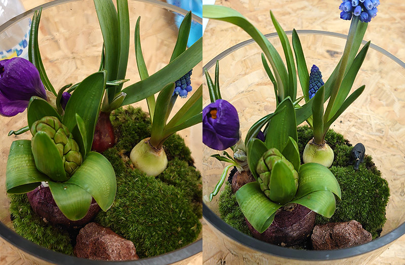 ムスカリとクロッカスはすでにお花が咲いた状態。